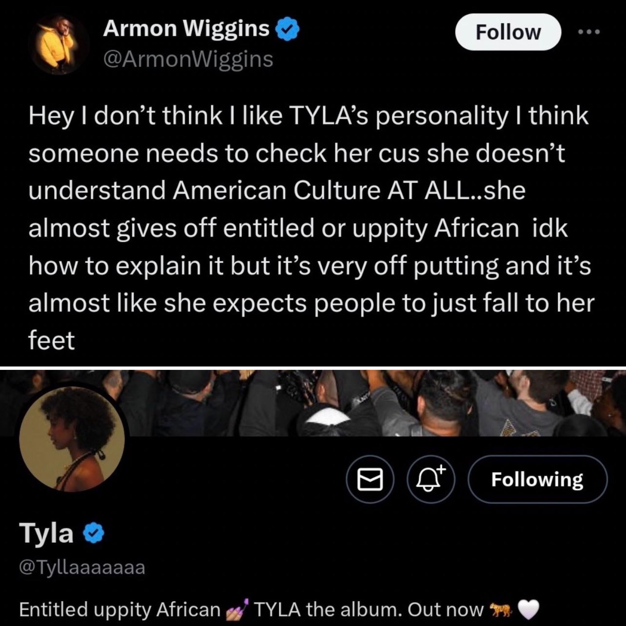 2. people have been having a hate boner for Tyla since she said she wasnt black and now everything she does is overanalized to the highest degree. I also think that xenophobia plays a part in it aswell, people expect her to be a certain way because she’s South African, they expect her to be at their feet thanking them for allowing her to exist and since she’s not, theres a problem