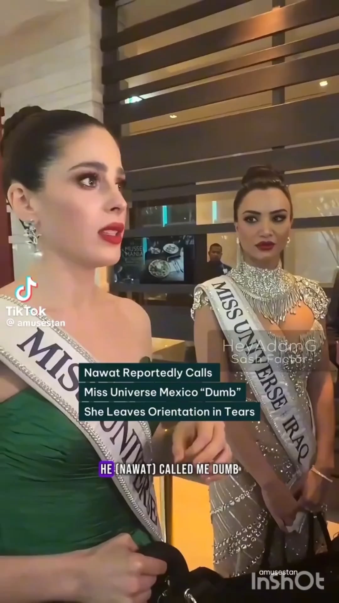 14 other representatives also walked out, including Miss Iraq, seen in the video with Miss Mexico. It's unclear what will happen now, as Nawat said to the rest of the girls that if they wanted to stay in the competition they had to sit back down.