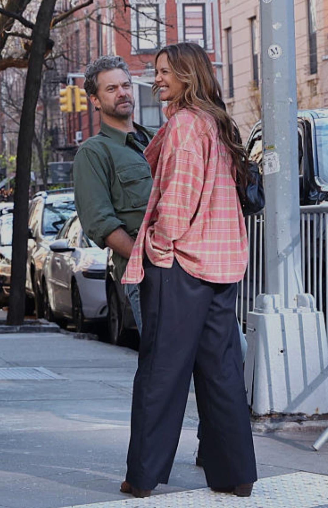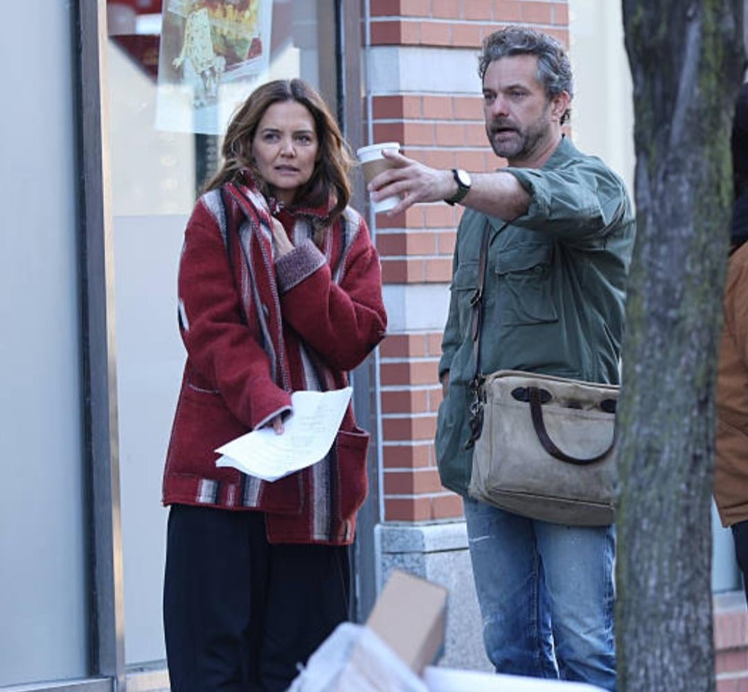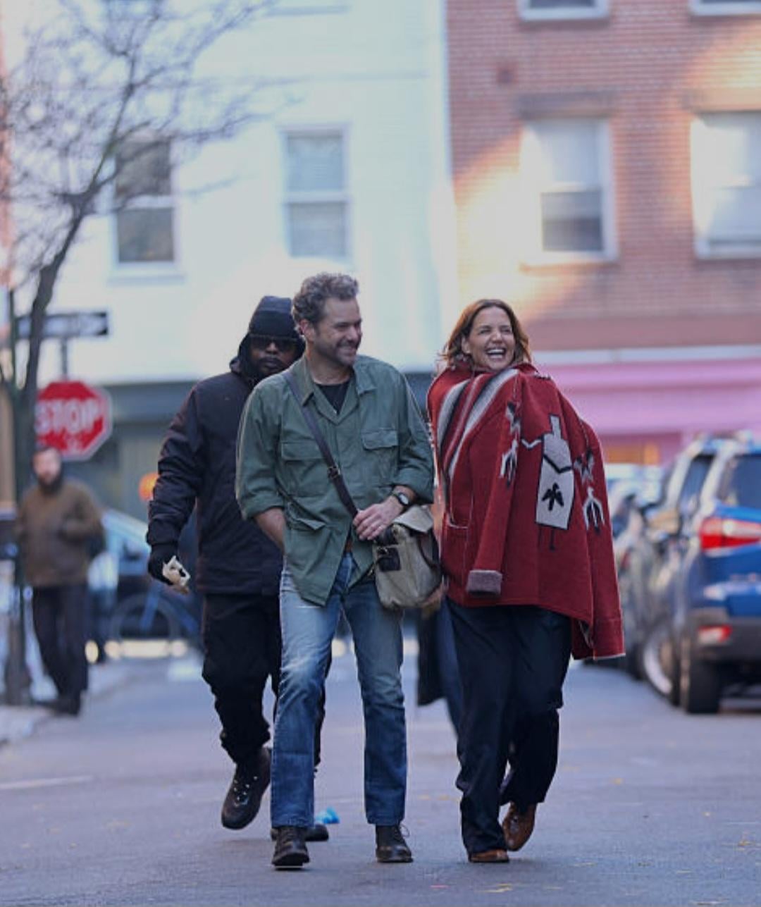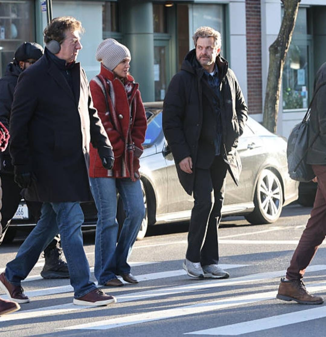 Joshua Jackson and Katie Holmes were seen doing reshoots for their upcoming movie Happy Hours in the West Village, Manhattan on December 3rd. They appeared to be cold.