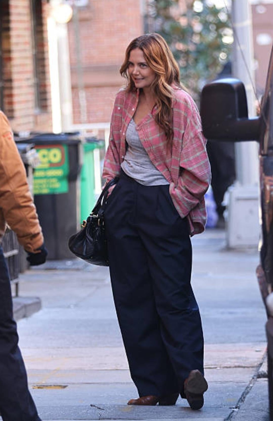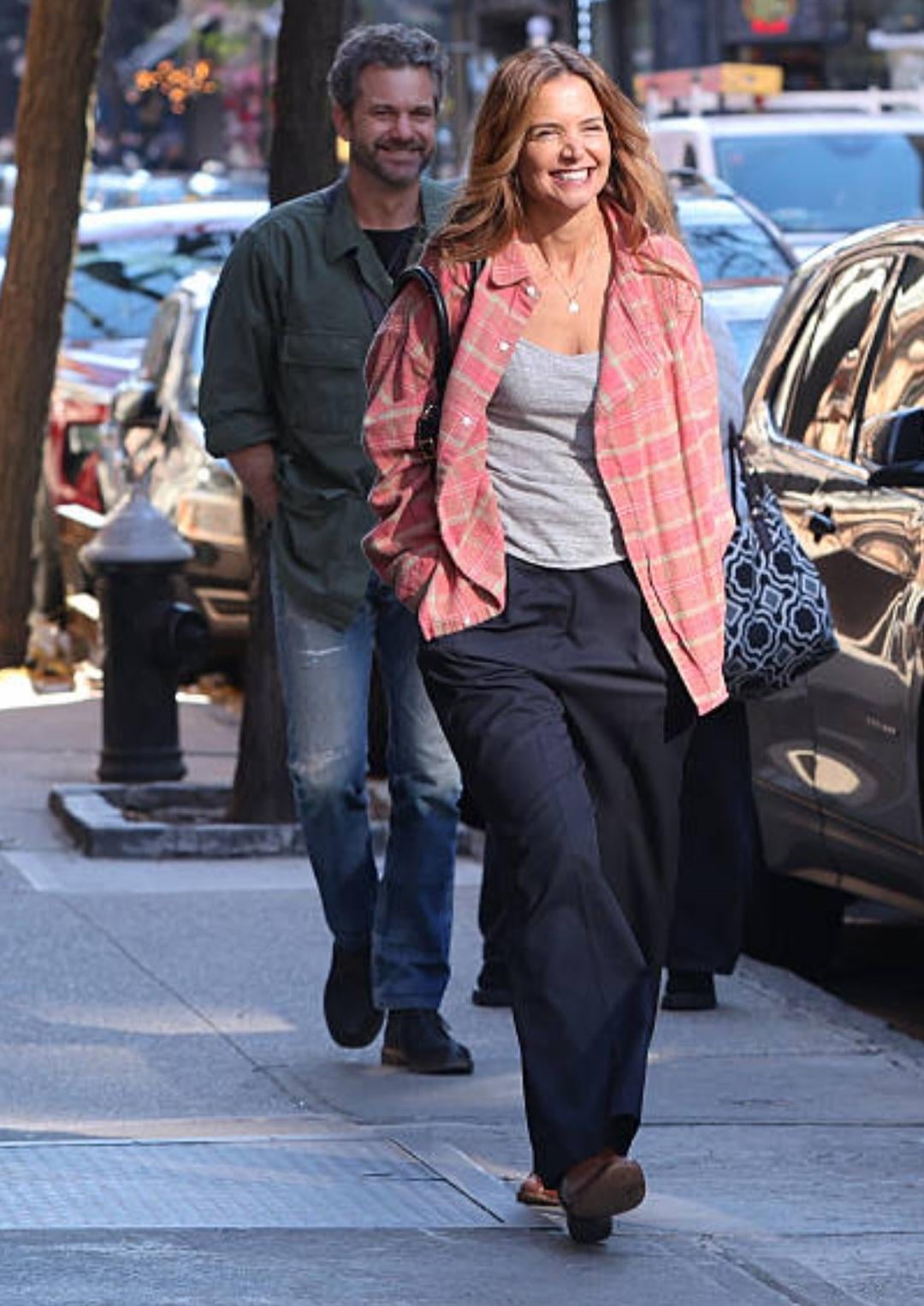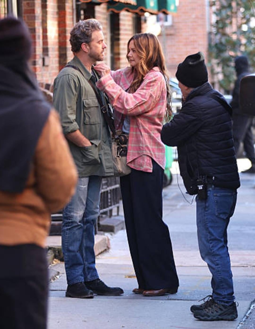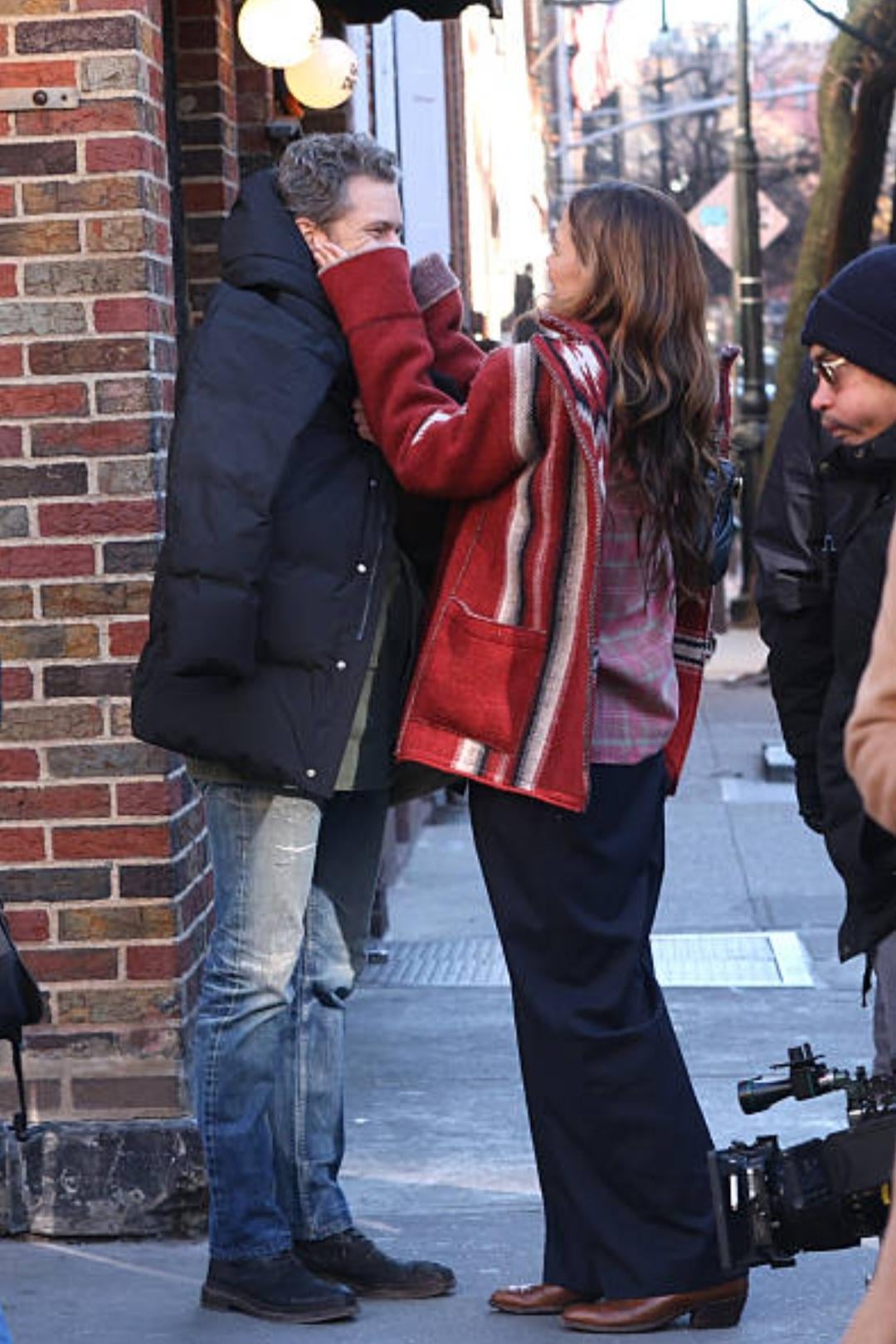 Joshua Jackson and Katie Holmes were seen doing reshoots for their upcoming movie Happy Hours in the West Village, Manhattan on December 3rd. They appeared to be cold.