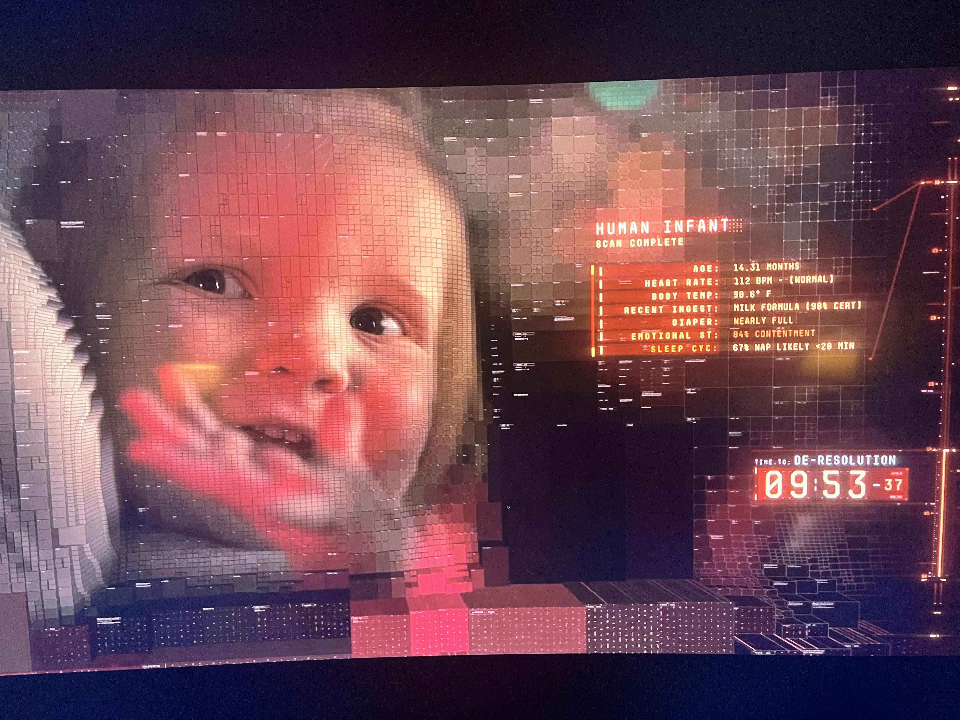 This baby waving at Jared Leto in “Tron: Ares” (2025) has a “nearly full” diaper, according to the on-screen readout. by moviegoermike
