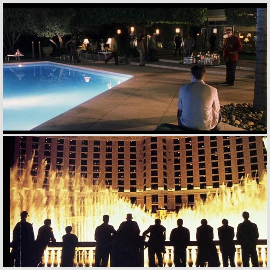 3. Good catch with the song. One nit to pick though… the ending scene there doesn’t have the entire crew. Danny was arrested at this point, so there’s just the 10 of them watching the fountain.