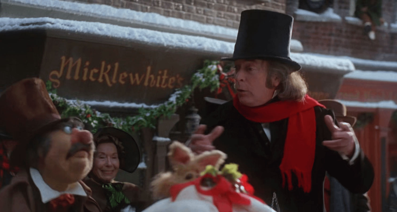 In The Muppet Christmas Carol (1992), a shop called Micklewhite’s can be seen in the background. This is a reference to Michael Caine’s birth name, Maurice Micklewhite.