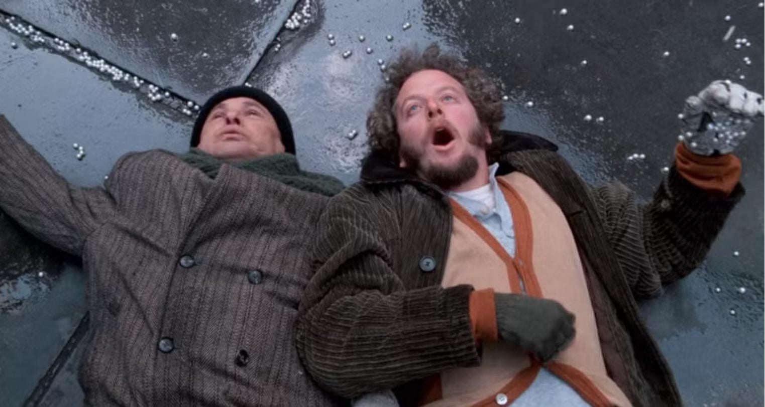 I’ve watched this movie countless times and only remember Marv stealing mittens and a scarf with the “sticky bandit” tape glove but never noticed the pearls sticking to it until today. It would’ve been a nice detail if they were still stuck later in the scene. After they lose Kevin, I also noticed for the first time he steals someone’s hat, too.