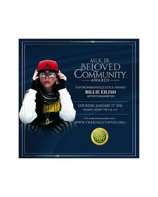 Billie Eilish was recently honored with the Beloved Community Environmental Justice Award at the MLK Jr. Beloved Community Awards in Atlanta — an event celebrating leaders who champion justice, equity, and community impact.