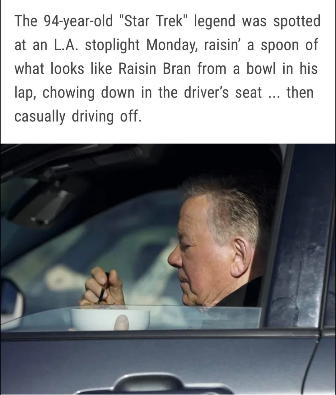 I saw this! Like, TMZ, leave this poor old man alone! 😂 (also, I would totally spill cereal and milk everywhere if I tried to eat it and drive.)