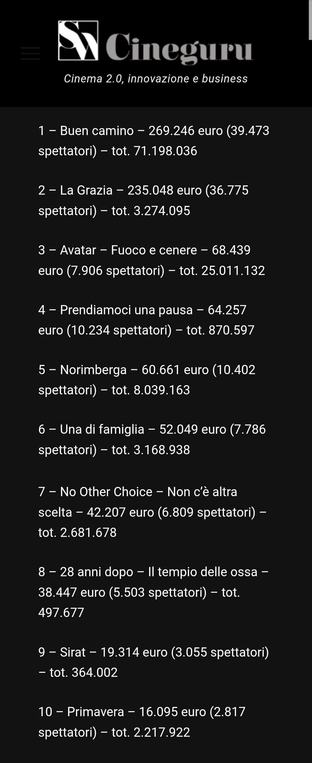 Source: https://cineguru.screenweek.it/2026/01/buen-camino-oltre-i-71-milioni-il-box-office-di-mercoledi-21-gennaio-48949/ by AGOTFAN