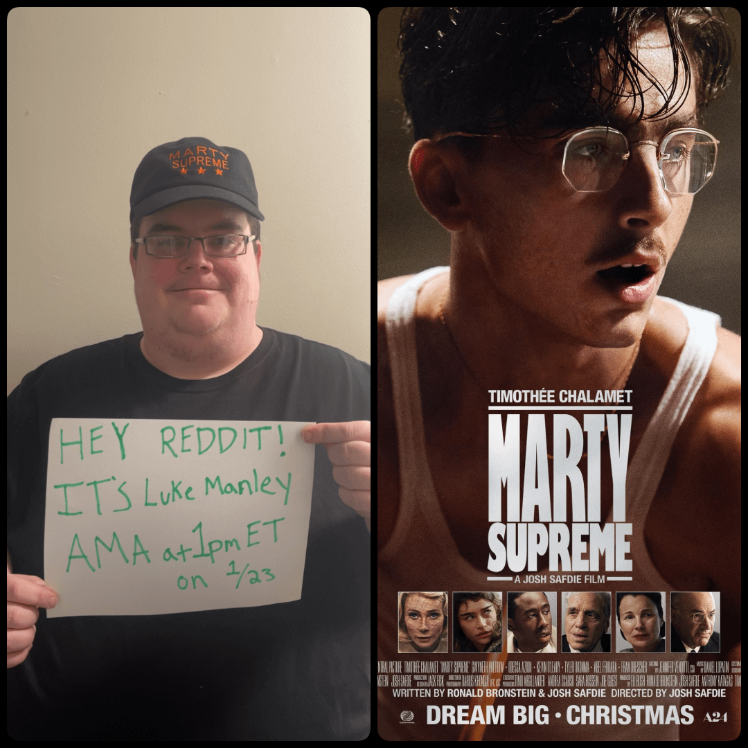 [Crosspost] Hey /r/movies. I’m Luke Manley. I made my feature film debut in A24’s MARTY SUPREME, alongside Timothee Chalamet, Gwyneth Paltrow, Odessa A’zion, and Tyler Okonma. It’s directed by Josh Safdie and in theaters now, and in IMAX starting Jan 30. Ask me anything!