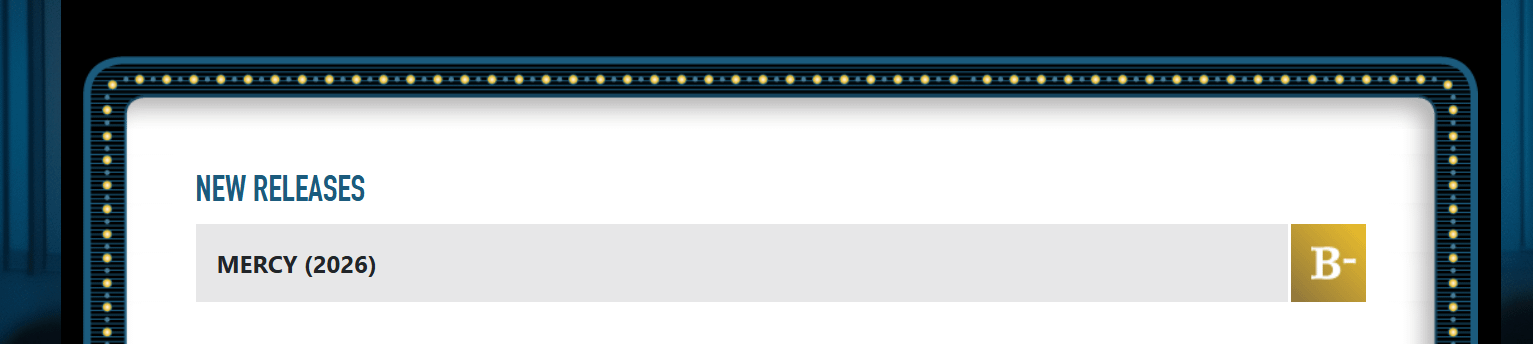 SanderSo47 on January 24, 2026 3:26 am It’s Chris Pratt’s worst ever grade as leading star. Compared to some of Timur Bekmambetov’s films: – *Wanted (2008):* B+ – *Abraham Lincoln: Vampire Hunter (2012):* C+ – *Ben-Hur (2016):* A– The rest of his films weren’t polled, so they have no grade.