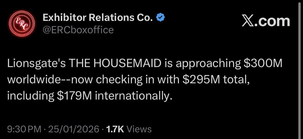 Impressive overseas numbers for The Housemaid that’s going to cross the $300M WW mark during the week