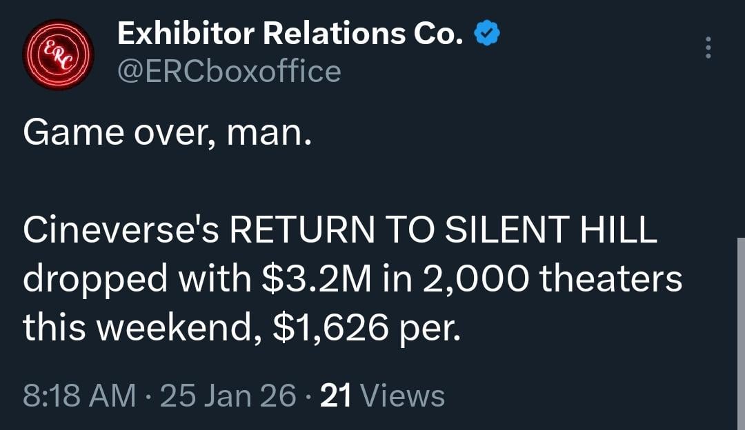 Honestly, for being such a small release (it’s basically only getting a token release in leaup to a future digital/physical media release) with zero fanfare and little advertising… that’s not *that* bad. Originally it was projected to only make ~1.5 million.