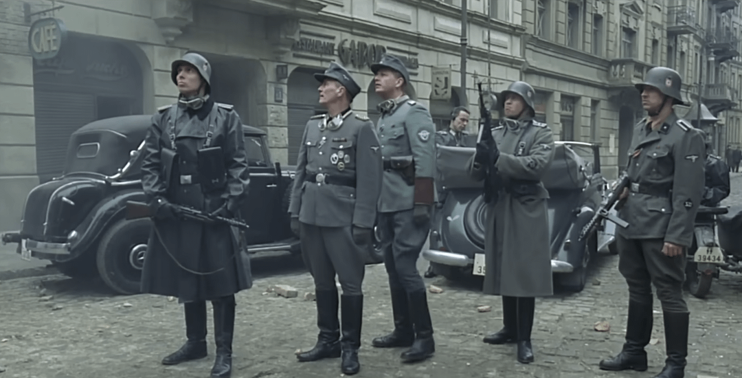 In The Pianist (2002), the Warsaw Ghetto Uprising scene almost exactly replicates the infamous photo taken in 1943. by bshap15