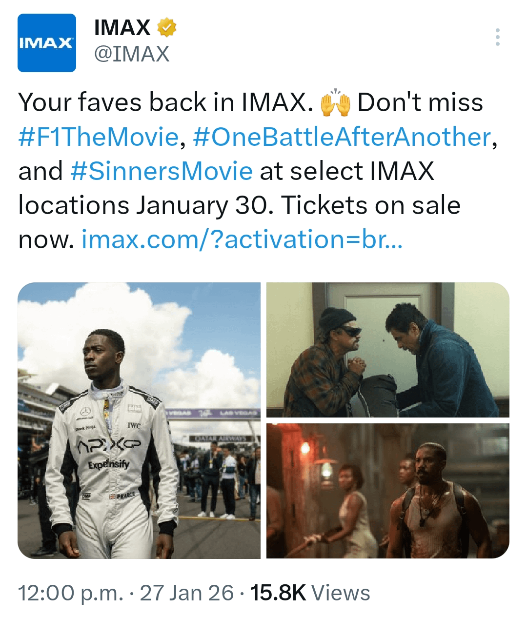 F1, Marty Supreme *and* Sinners in IMAX this weekend?
