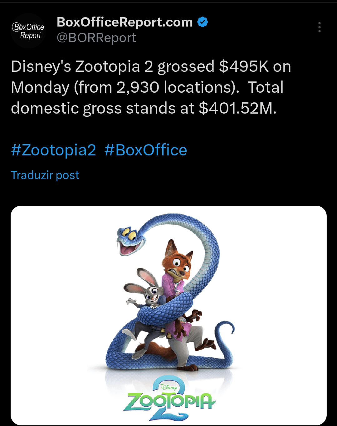 WOW, only ~120k less than Avatar Fire & Ash‘s Monday of 613k…, Zootopia 2 might beat it this weekend.