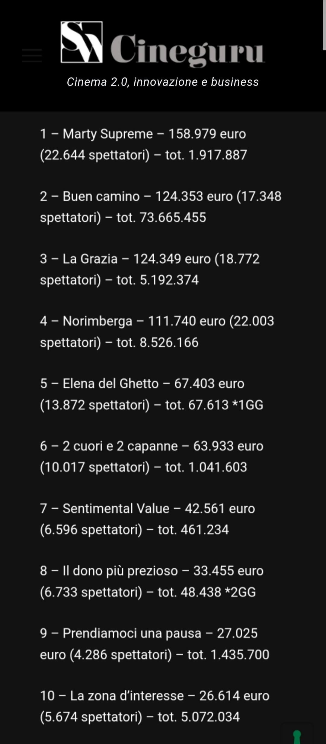 🇮🇹 Italian box office Tuesday January 27