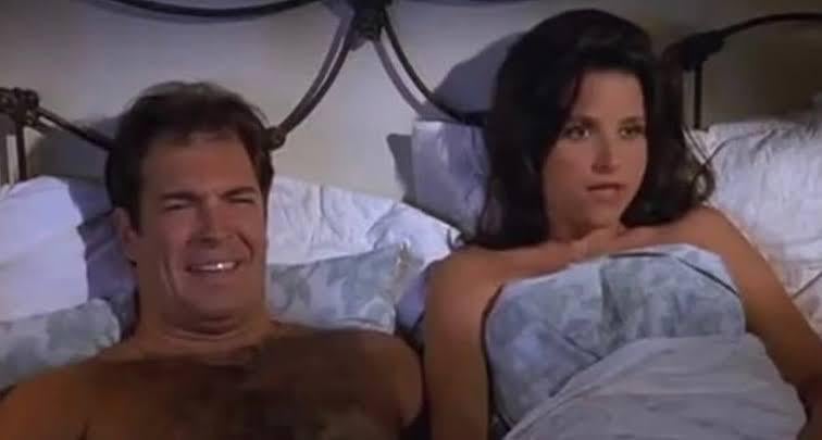 Share Facebook Twitter LinkedIn Pinterest Bluesky Threads Patrick Warburton and Julia Louis-Dreyfus in 1997 by MagpieOpus