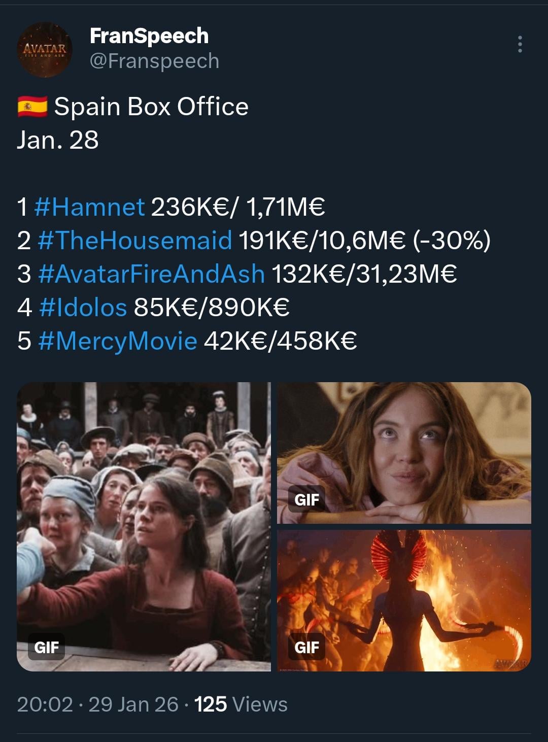 🇪🇸 Spain Box Office Wednesday January 28