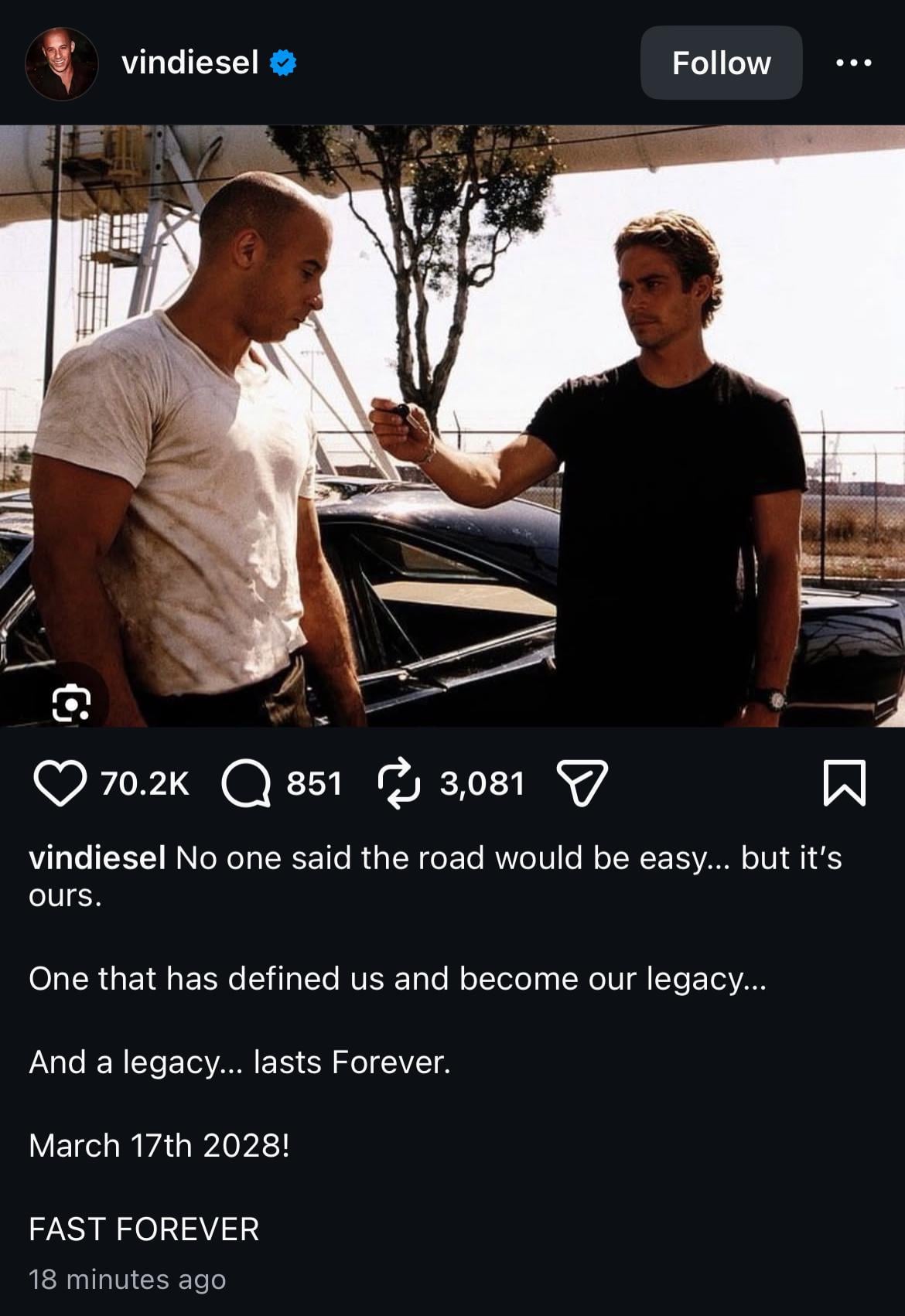 That took Universal a lot longer than it should. I understand Final Reckoning taking two years, but Five is ridiculous. Fast Forever should’ve dropped in 2025 or 2026 (for the 25th Anniversary of the franchise). This is definitely Universal saying fuck it and ripping the band aid off.