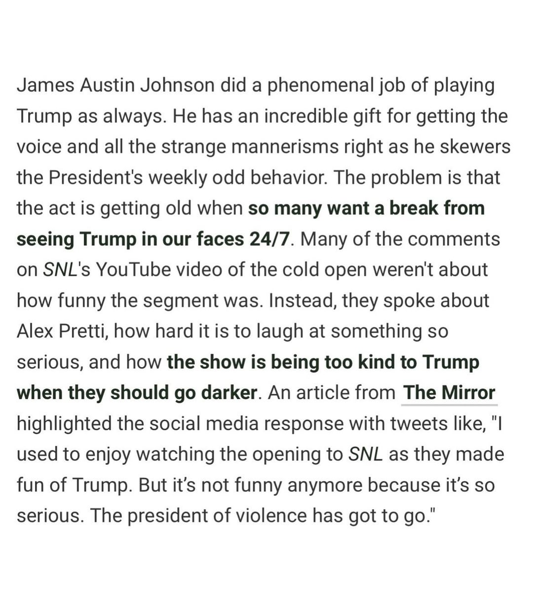 SNL has been too soft on trump and MAGA from the beginning (remember when they had him host in 2015 before he was elected?).