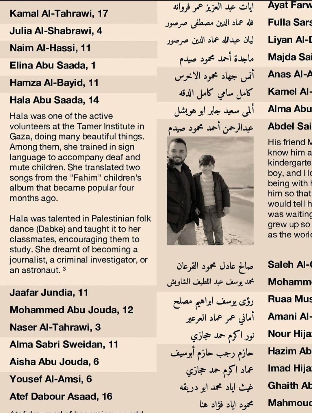 “Hala (14) trained in sign language to accompany deaf and mute children, she dreamed of being a journalist, a criminal investigator or an astronaut.”