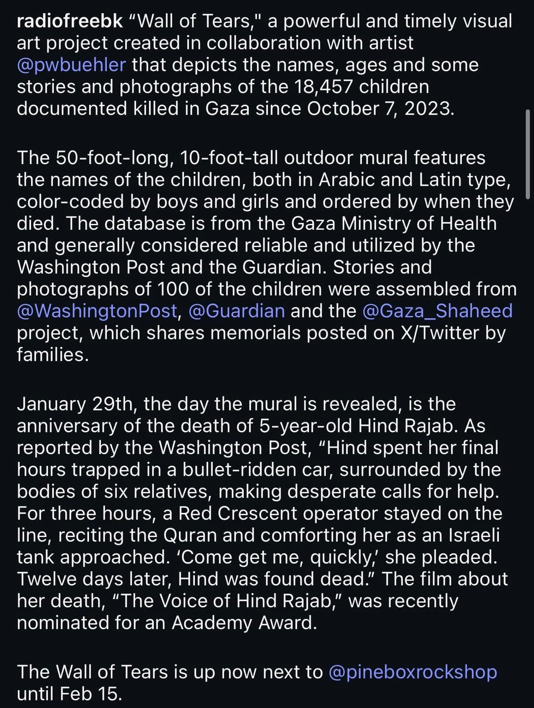 It’s disgustingly devastating how big this mural has to be, due to the thousands of children killed by Israel, let alone the total number of people lost. And some people still refuse to acknowledge/care about this genocide.