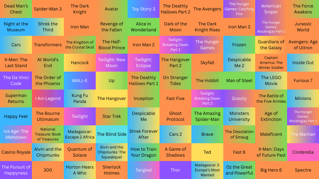Apologies btw if the gradient isn’t clear for some films. I tried playing around with tones and hues but they didn’t look good if they were so mixed up, so I kept the tones light.