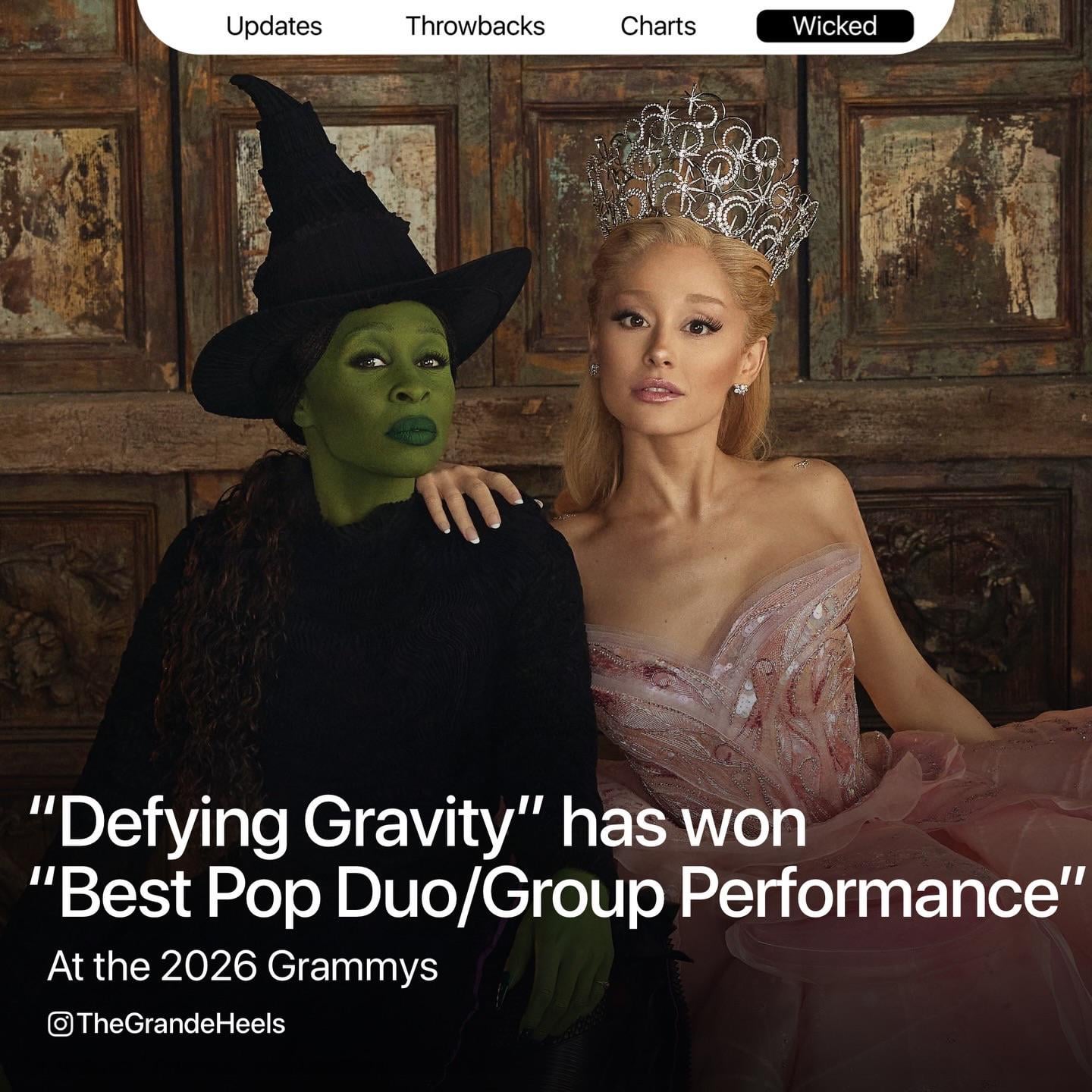 Ariana Grande and Cynthia Erivo win “Best Pop Duo/Group Performance” for “Defying Gravity” at the 2026 Grammy AwardsFebruary 1, 2026