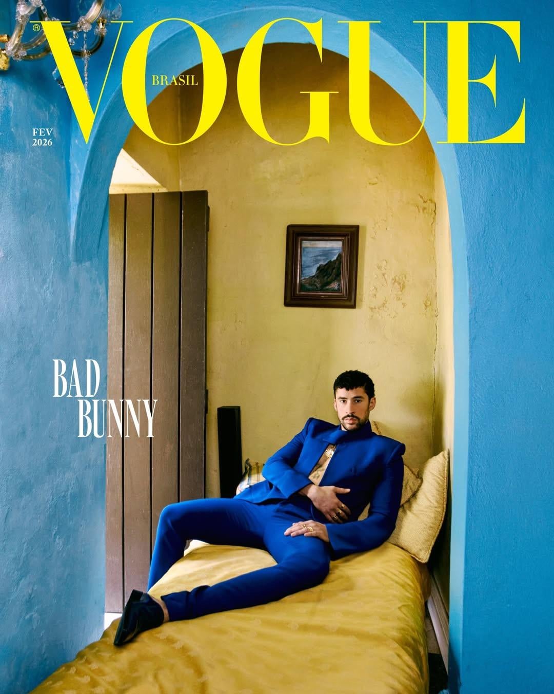 Bad Bunny covers the February 2026 issue of Vogue Brasil x GQ Brasil. Photographed by MAR+VIN & styled by Rita Lazzaroti.