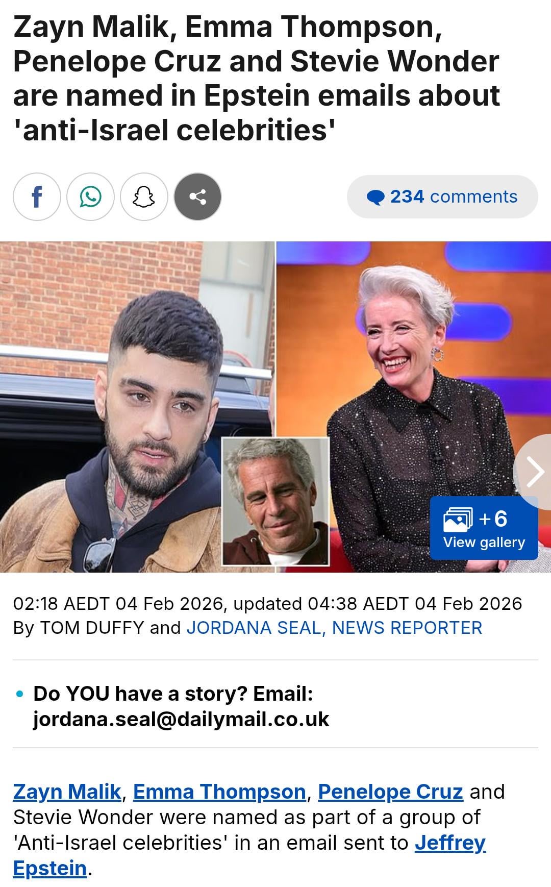 The e-mail was sent in 2014. It seems to be an article sent to Epstein for his approval by JNS. It lists the celebrities, whom it accuses of "making false accusations" against Israel, and then details their brand endorsements.
