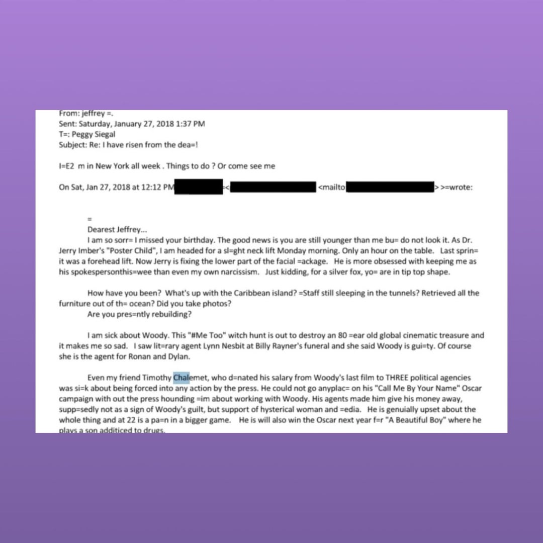 Timothee Chalamet is a name I never expected to see mentioned in the Epstein files. I am so disheartened.