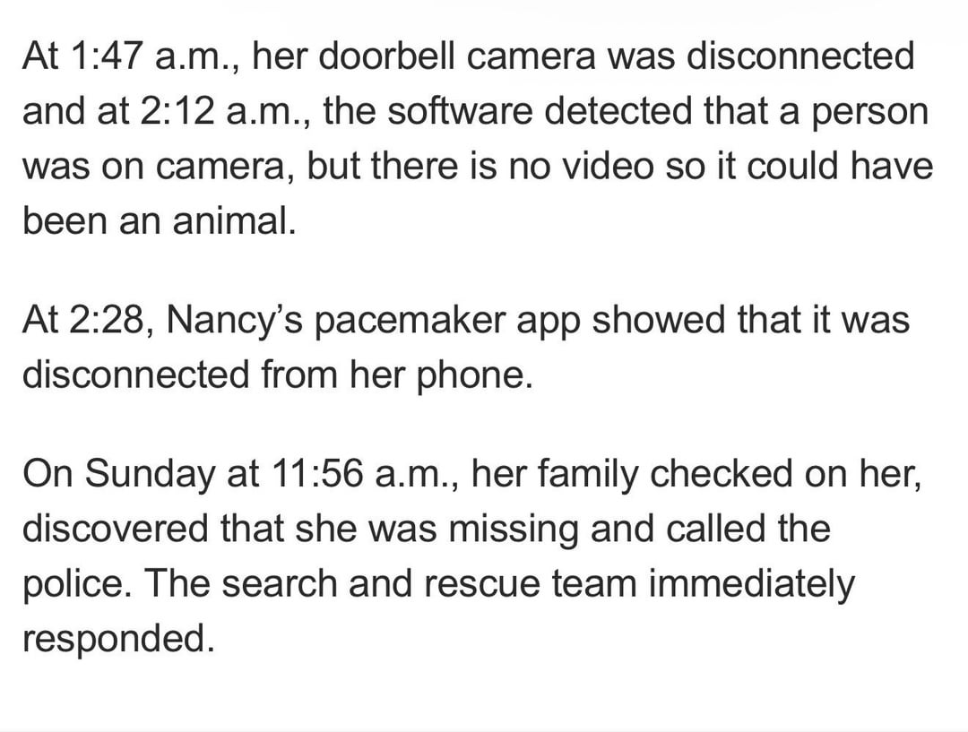 2:28, Nancy’s pacemaker app showed that it was disconnected from her phone.