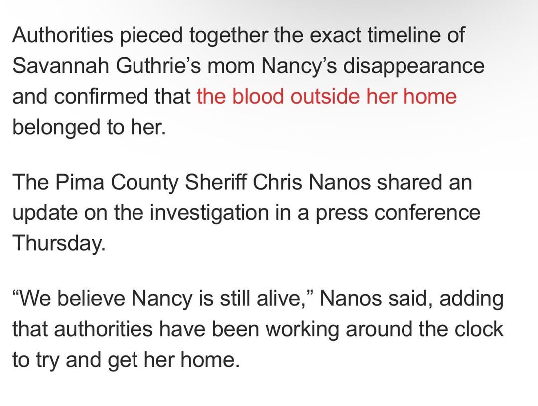 I just watched the whole press conference and I’m not convinced it’s even a kidnapping. The Sheriff seems out of his depth. They released the scene too early and a reporter was able to walk right up to the front door and take pictures and videos of the bloody porch. It’s amateur hour over there.