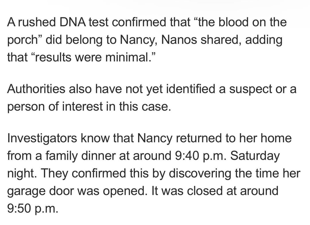 I hope she’s found alive and safe, but the details that continue to come out make me have doubts. It sounds like whoever did this are professionals. I also wonder if it’s wise that all this information coming out will help or hinder the investigation.