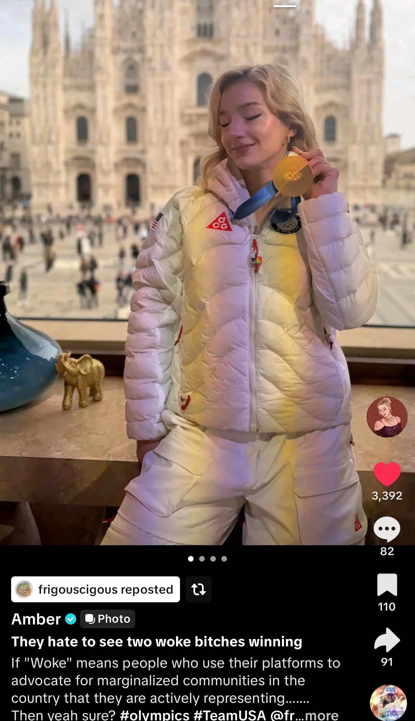 USA figure skater and Olympic Gold medalist Amber Glenn with the best social media post of the day: ‘They hate to see two woke bitches winning’ (she refers to fellow skater and gold medalist Alyssa Liu)