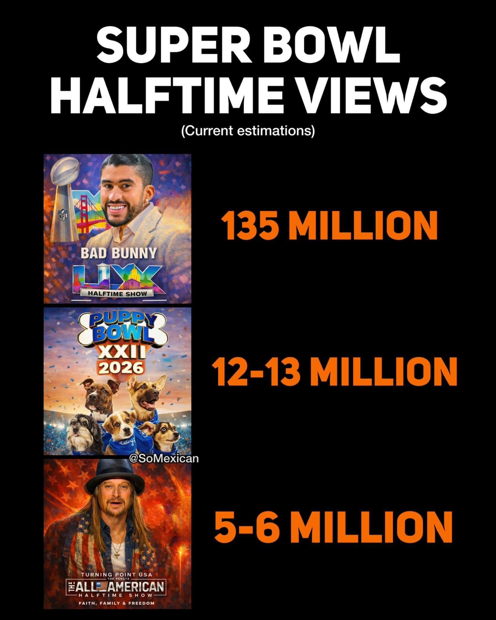 PolloConTeriyaki on February 11, 2026 12:36 am 2-3 million of TP USA was all bots. Proof: I went on YouTube to watch a ripped version of the Superbowl and it linked me Automatically to TPUSA.