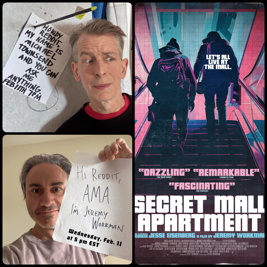 We are Jeremy Workman (director) and Michael Townsend (subject) from the documentary SECRET MALL APARTMENT. Part heist movie and part rallying cry against corporate overlords, the film tells the wild story of Michael and seven other artists creating an apartment inside the busy Providence Place Mall.