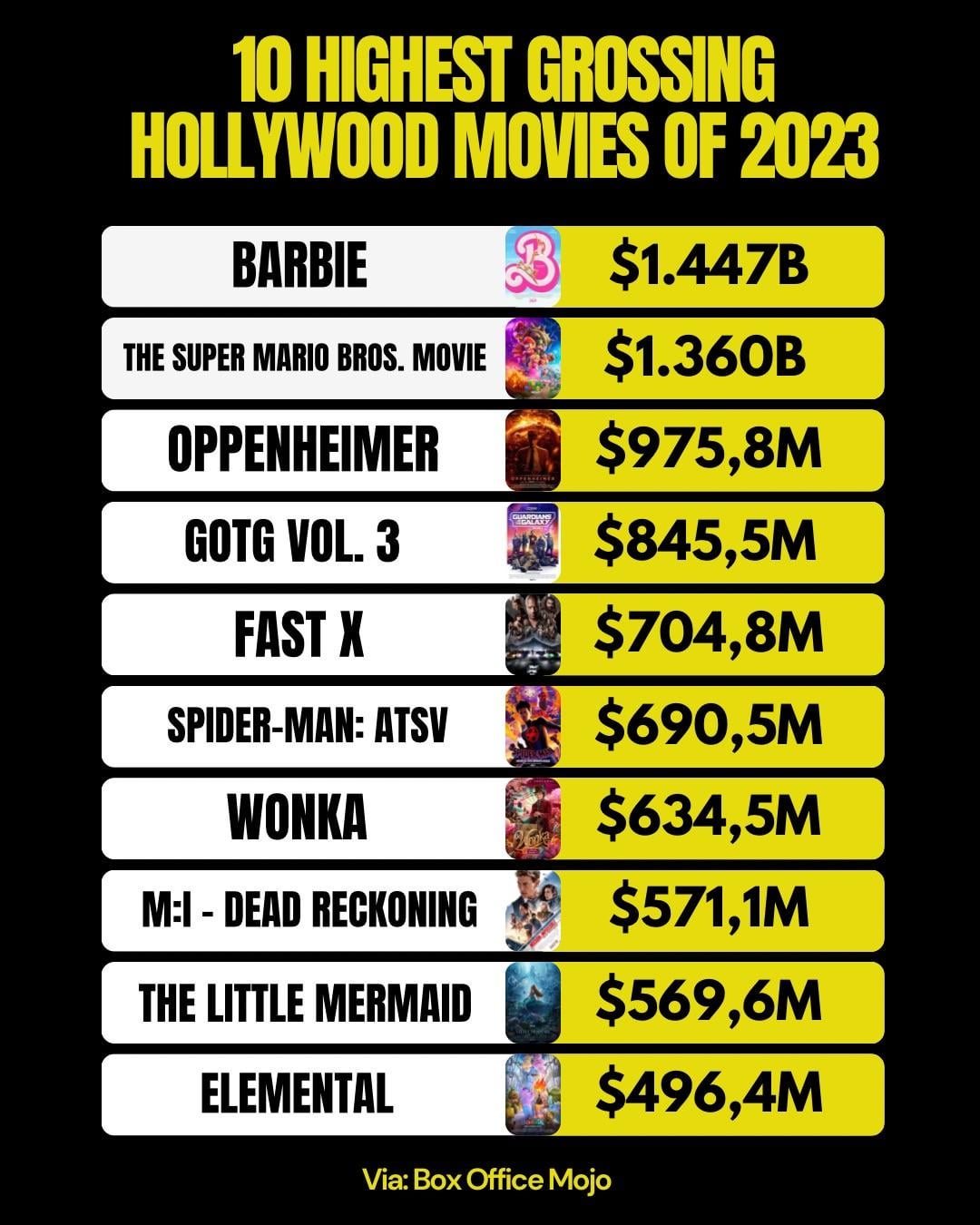 Elemental being the only original film here is insane! All the others are sequels; live-action adaptions; video game adaptations; book adaptations; biopics; films based on toys, on a sport, on comics; remake; prequel; etc.