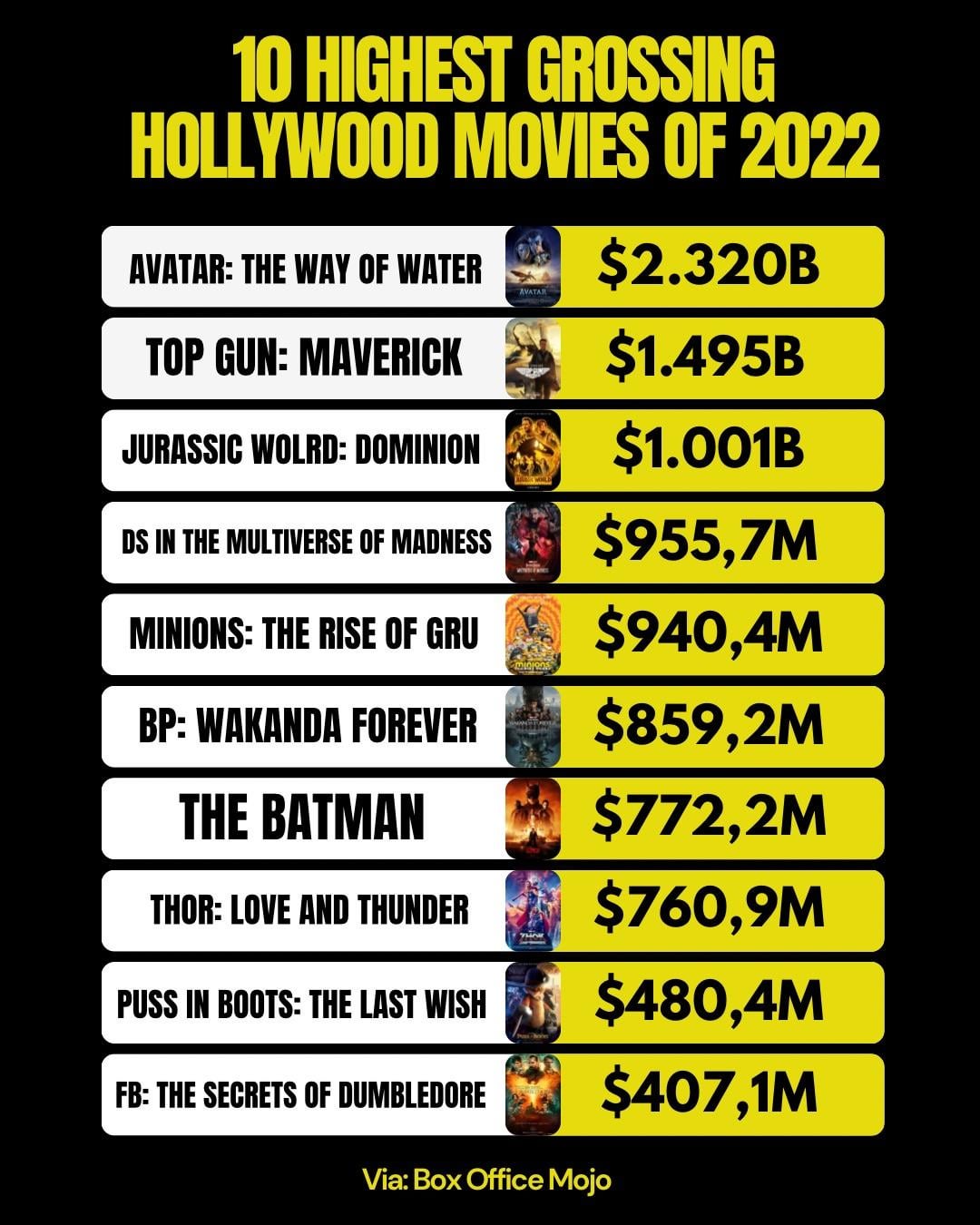 This year will easily have the highest number of grossers. Not full of $1B like 2019, but better than what we’ve been getting the last five years since theaters reopened.