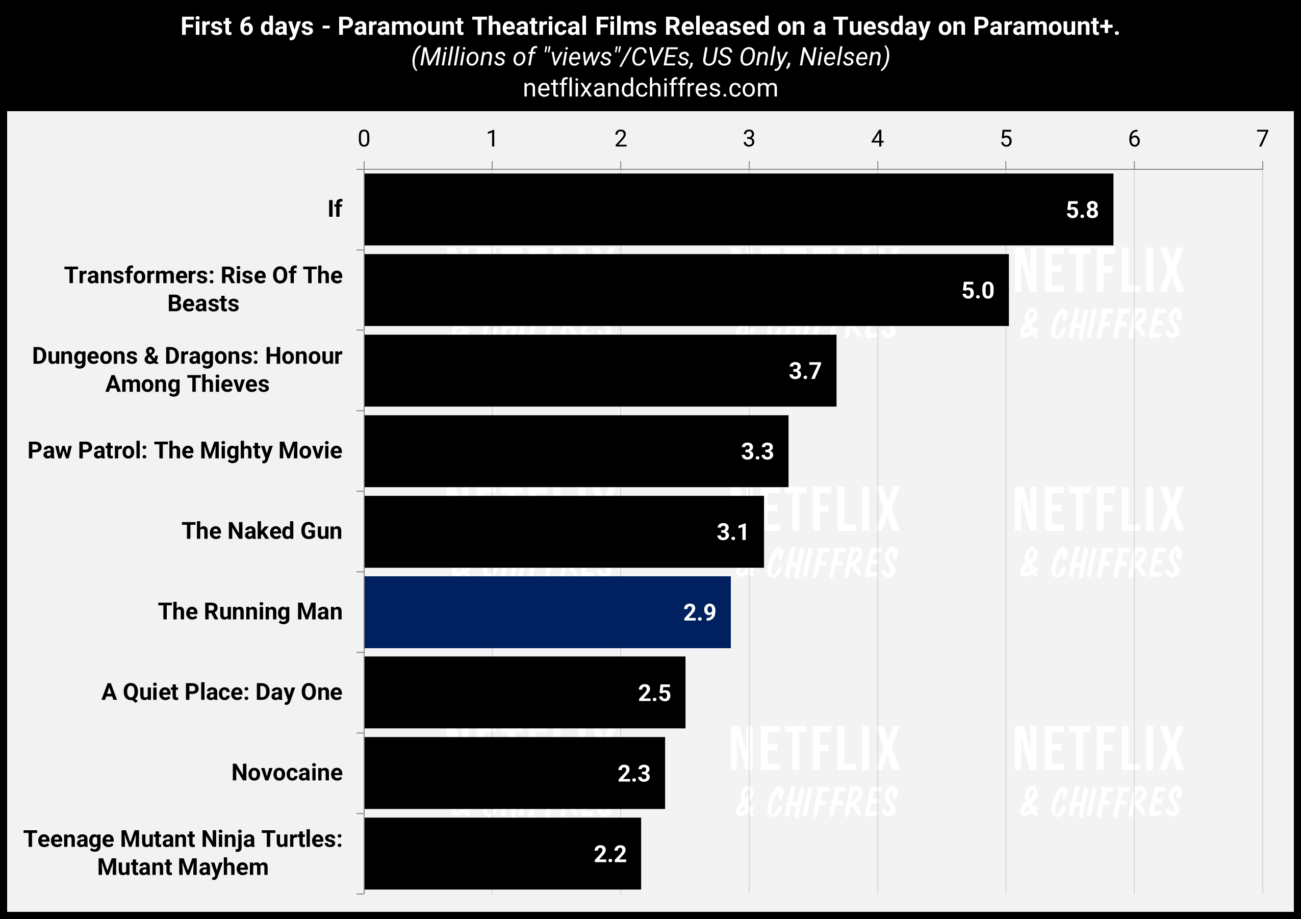 “The Running Man” opened to 2.9M “views” on Paramount+ in its first 6 days on the service in the US (Nielsen).February 13, 2026
