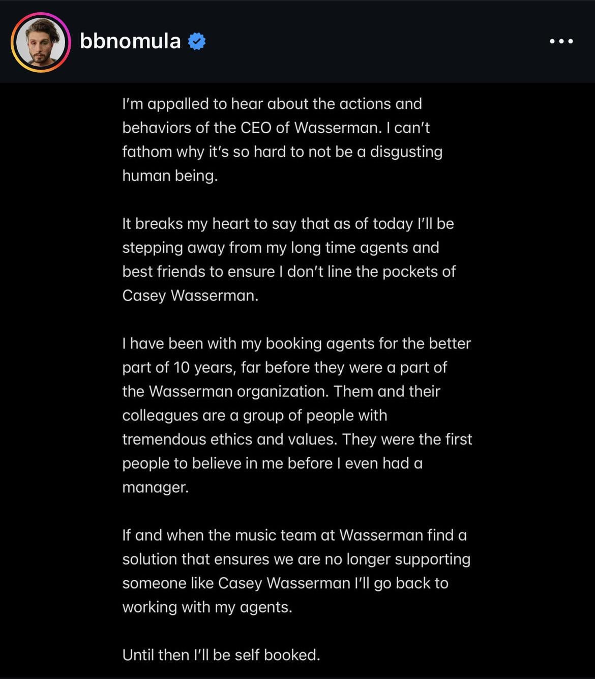 Part of the issue is Wassmerman doesn’t seem to have done anything particularly bad… 20 years ago he had an affair with Ghislaine Maxwell. Everyone already knew he was a shitty husband. And frankly… most people neither know nor care who their favorite artists agents are….