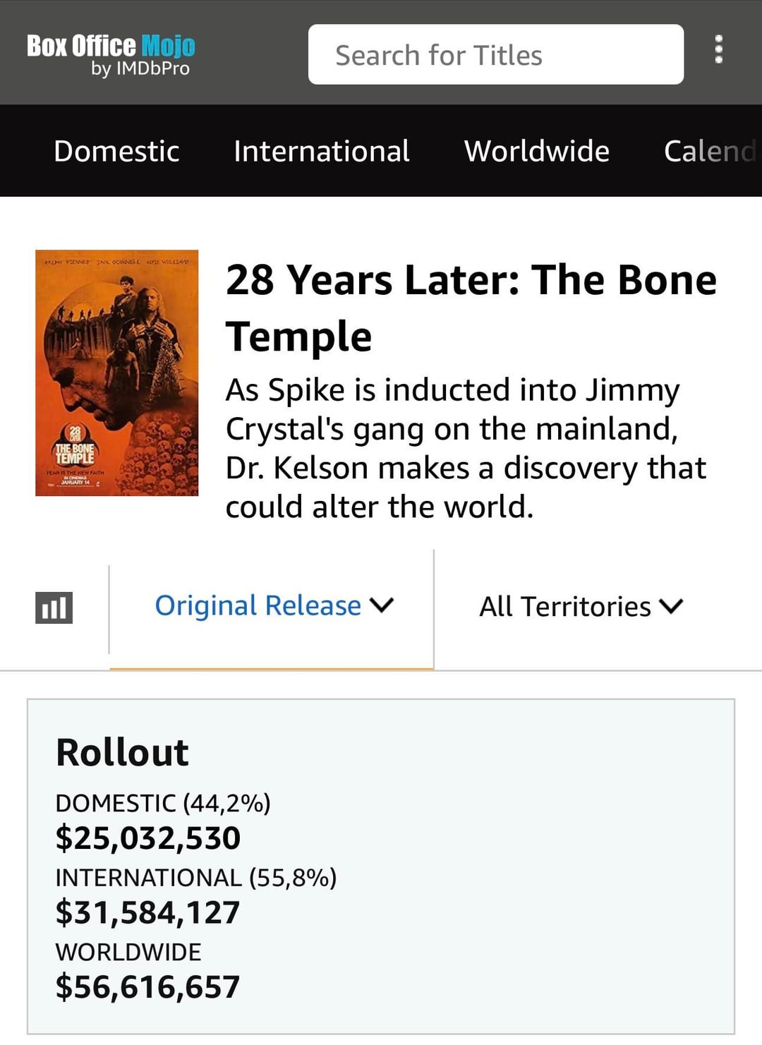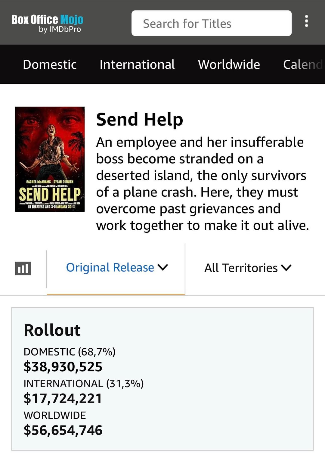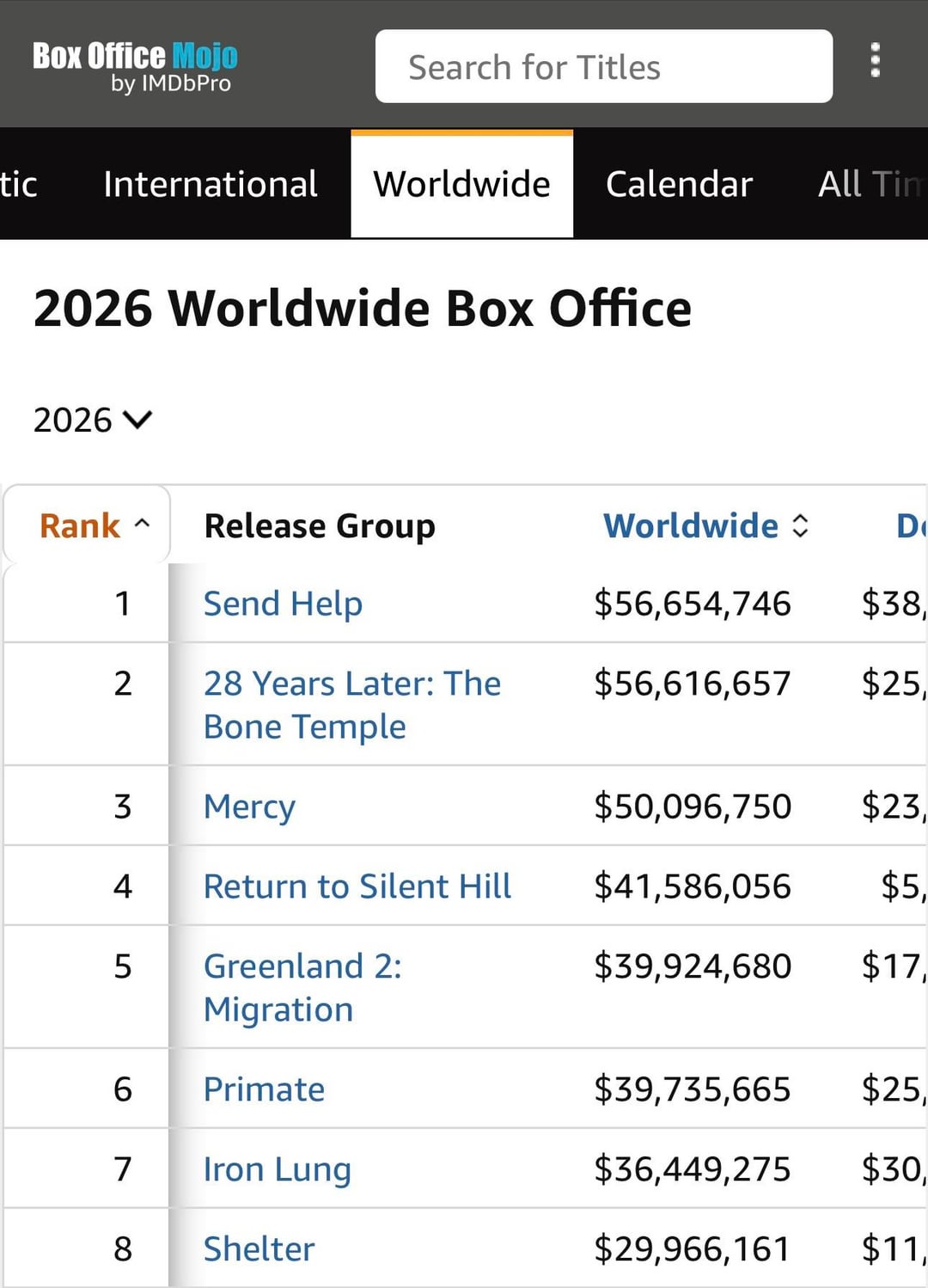 I absolutely loved send help. I also very much enjoyed bone temple, probably more than the last film but need to rewatch. Wish bone temple was making more money, but I think this proves how controversial the last sequel was, and I also think low attendance in general hurt it. Fucking cold out here