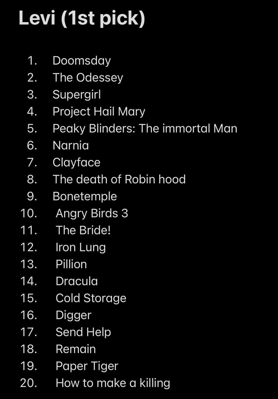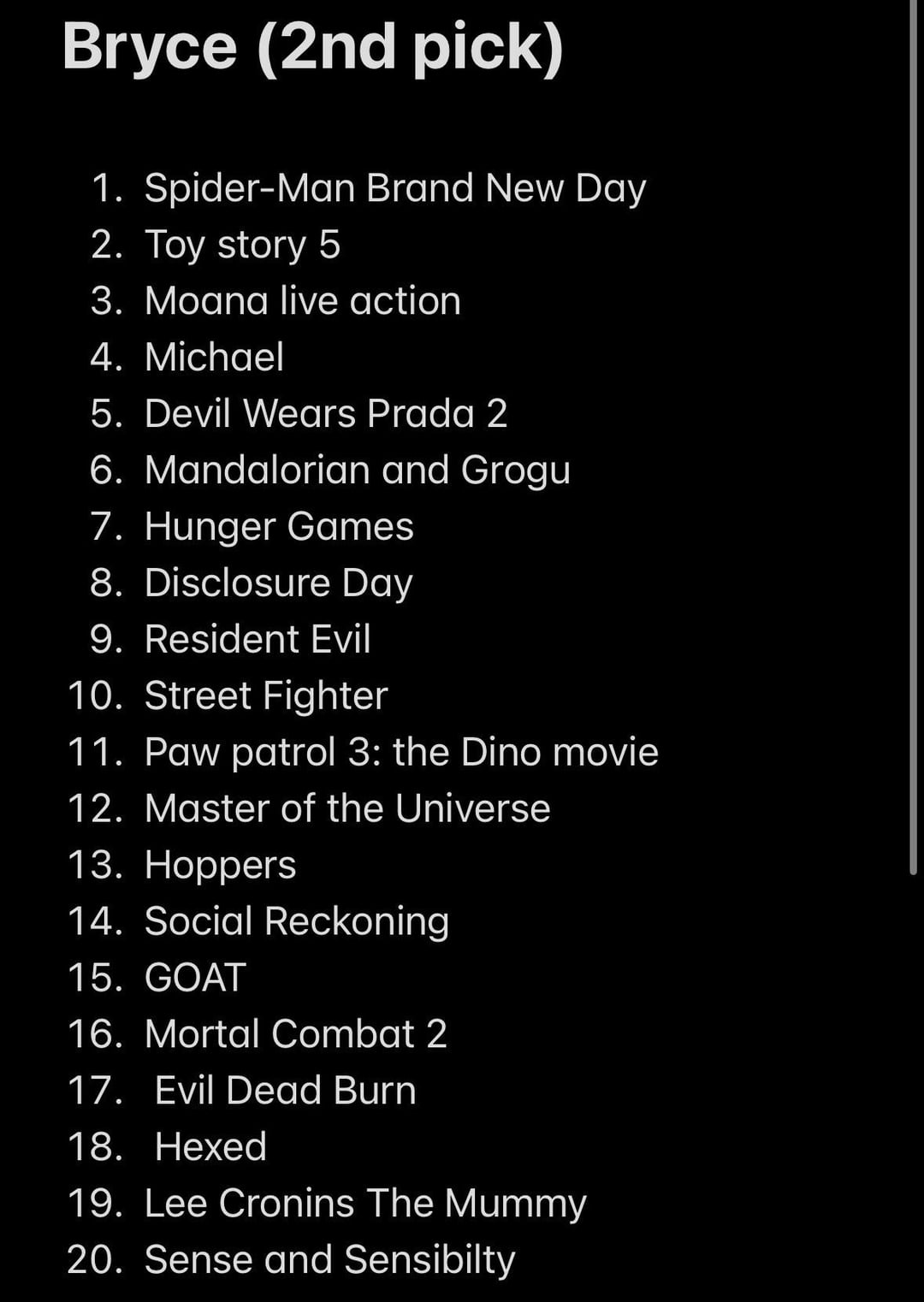 So, me and my friends did the 2026 box office draft game/trend, taking turns picking movies to see who has the most worldwide gross by the end of the of this year’s movies runs.