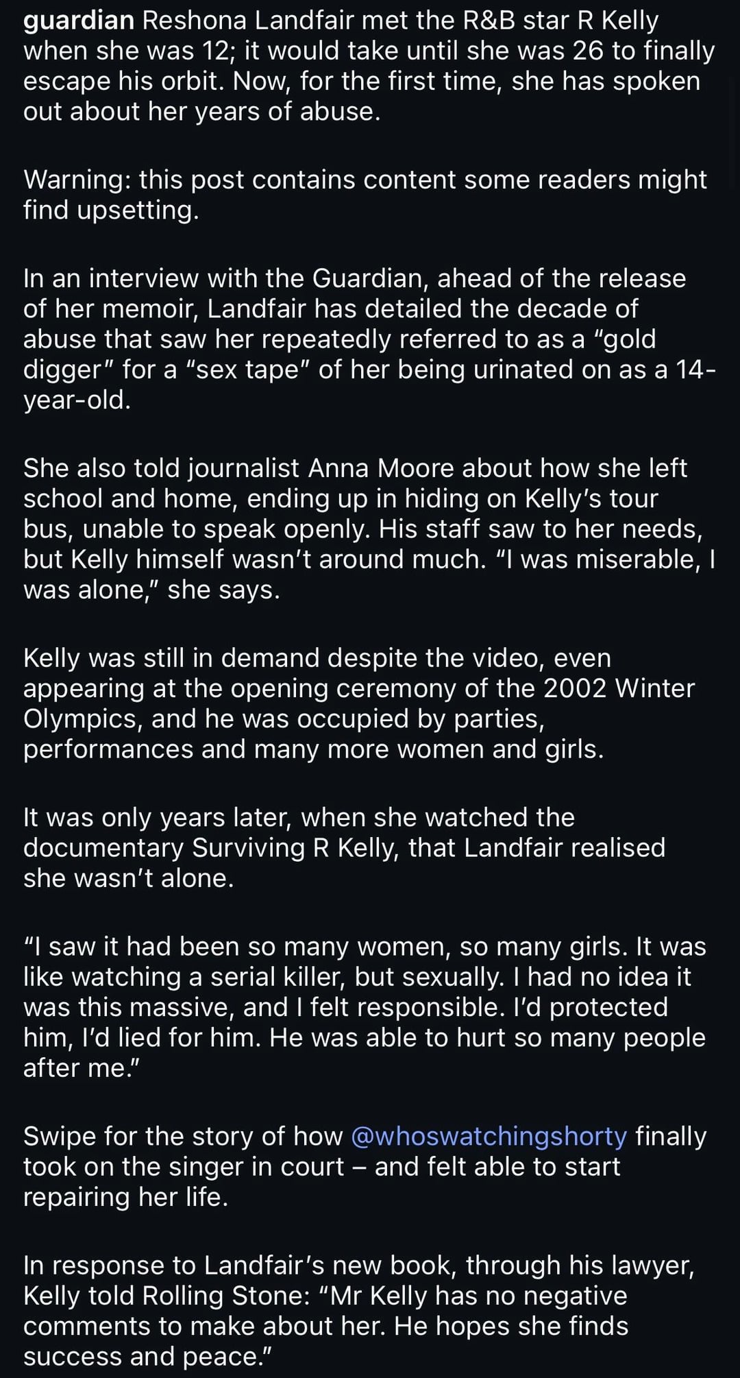 Reshona Landfair on her life after R Kelly: ‘I had to rebuild my entire self.’ She was just 14 when she was groomed and filmed in an explicit video. She tells the extraordinary story of how she survived in her new memoir.