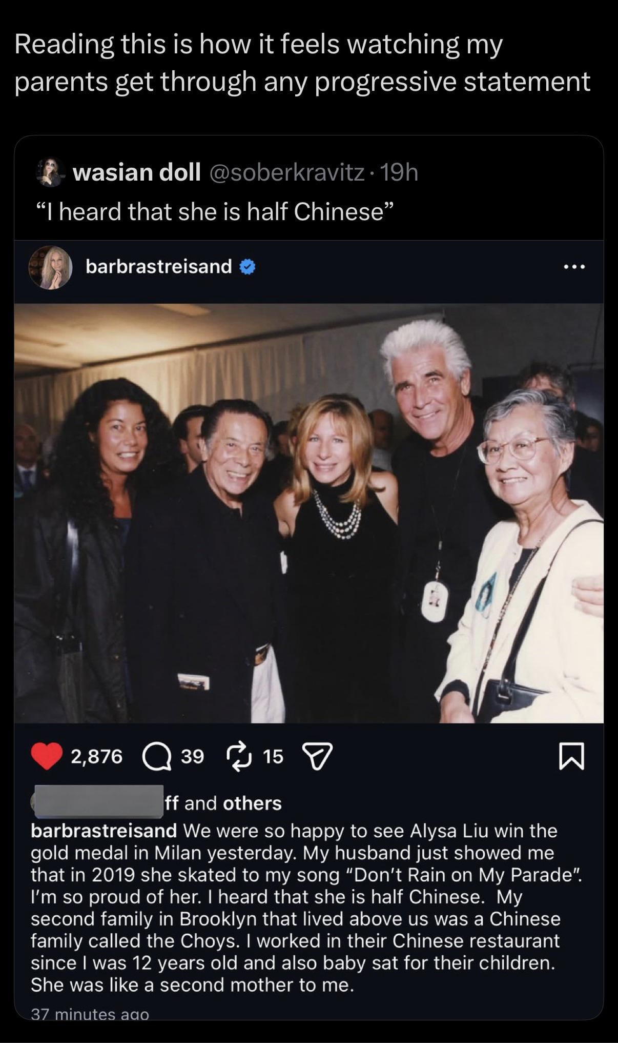 Barbra Streisand celebrates Alysa Liu’s gold medal 😭