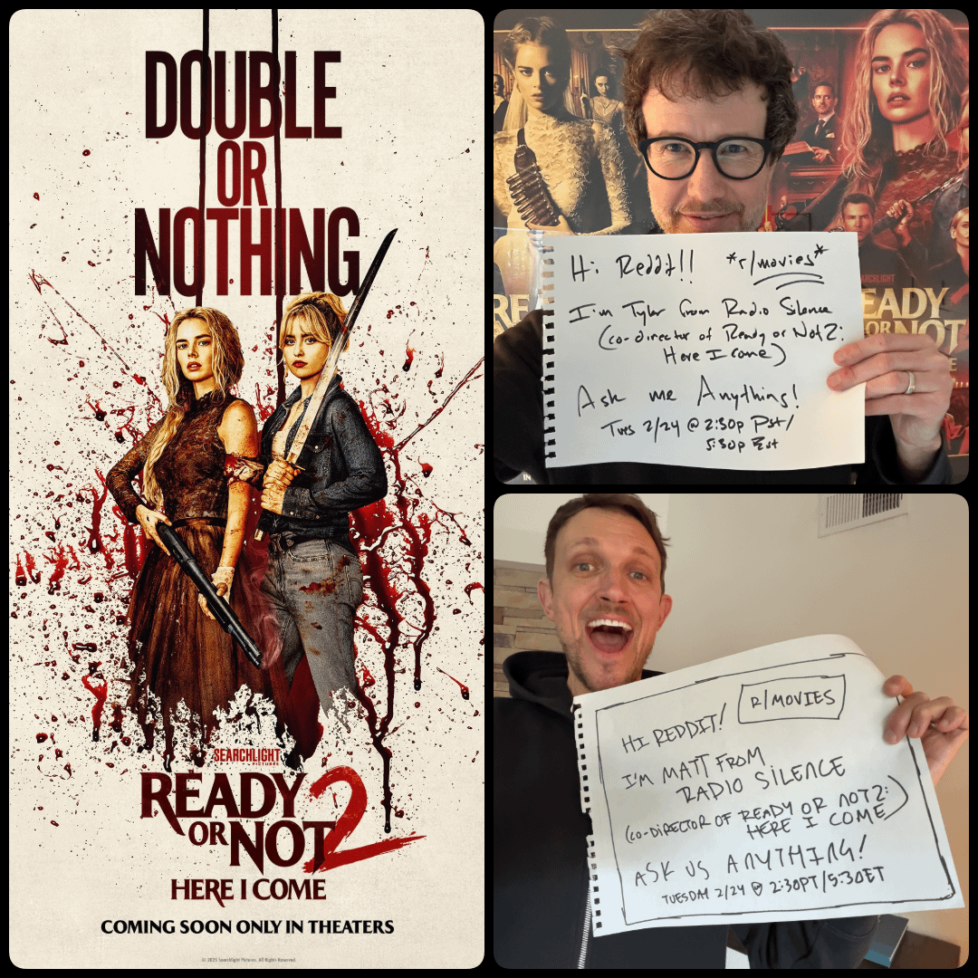 Hi r/movies. We're Matt & Tyler. You might know us as Radio Silence. We've co-directed READY OR NOT, SCREAM, SCREAM VI, and ABIGAIL.