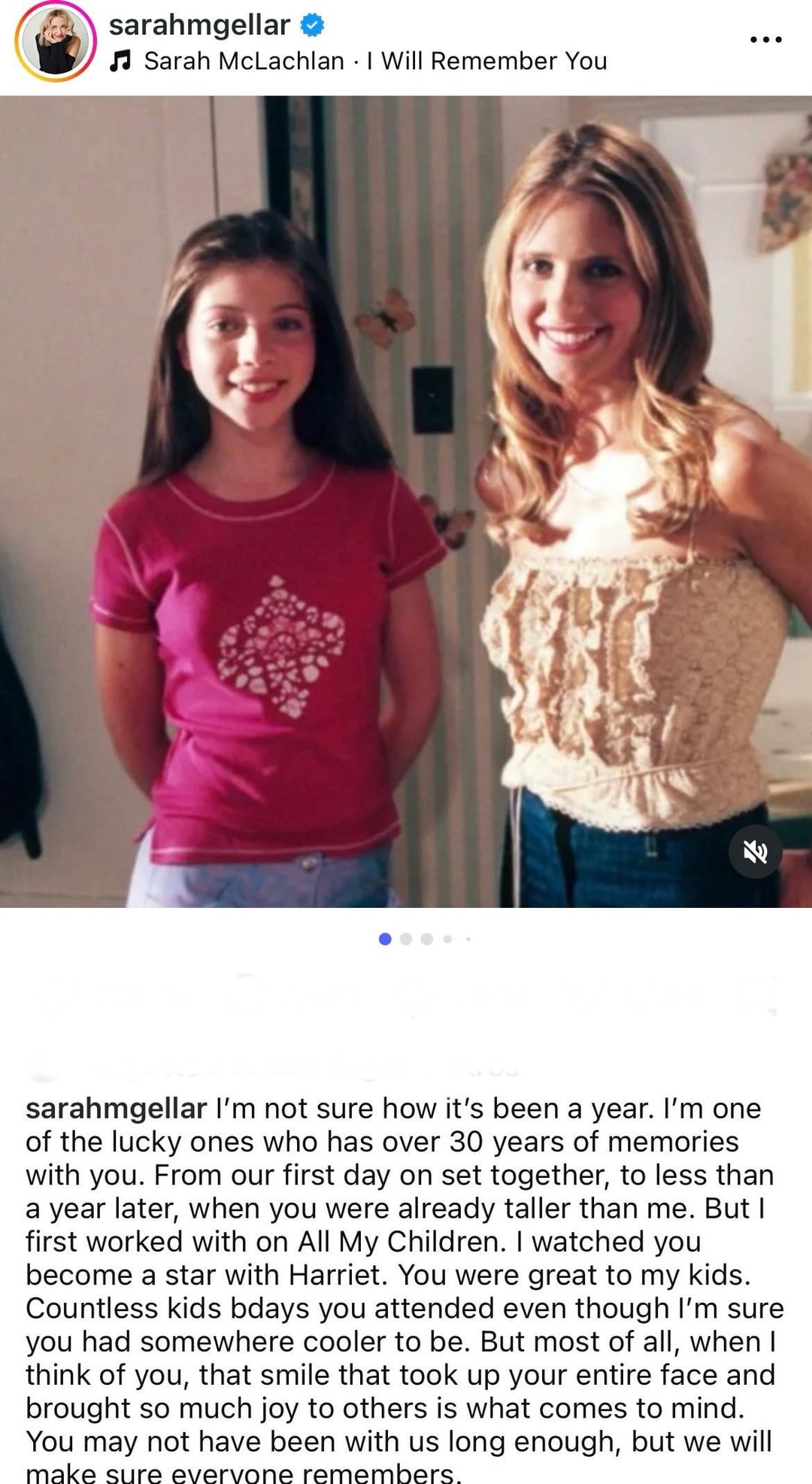 Sarah Michelle Gellar remembers Michelle Trachtenberg in the first anniversary of her death: “I’m not sure how it’s been a year. I’m one of the lucky ones who has over 30 years of memories with you.”