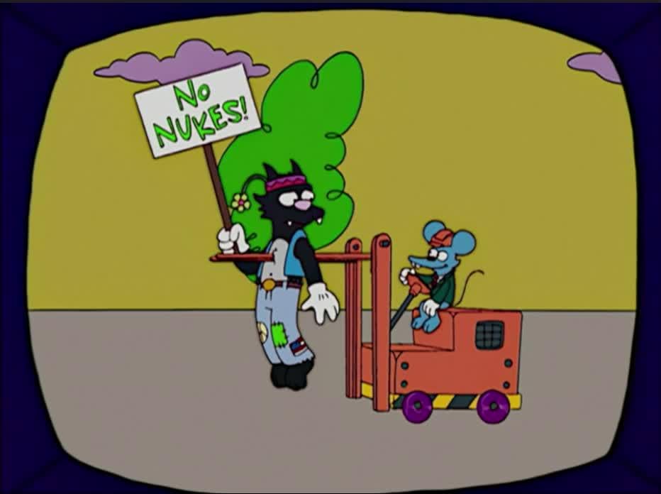 Silly Scratchy why are you protesting one of the safest and cleanest forms of electricity?