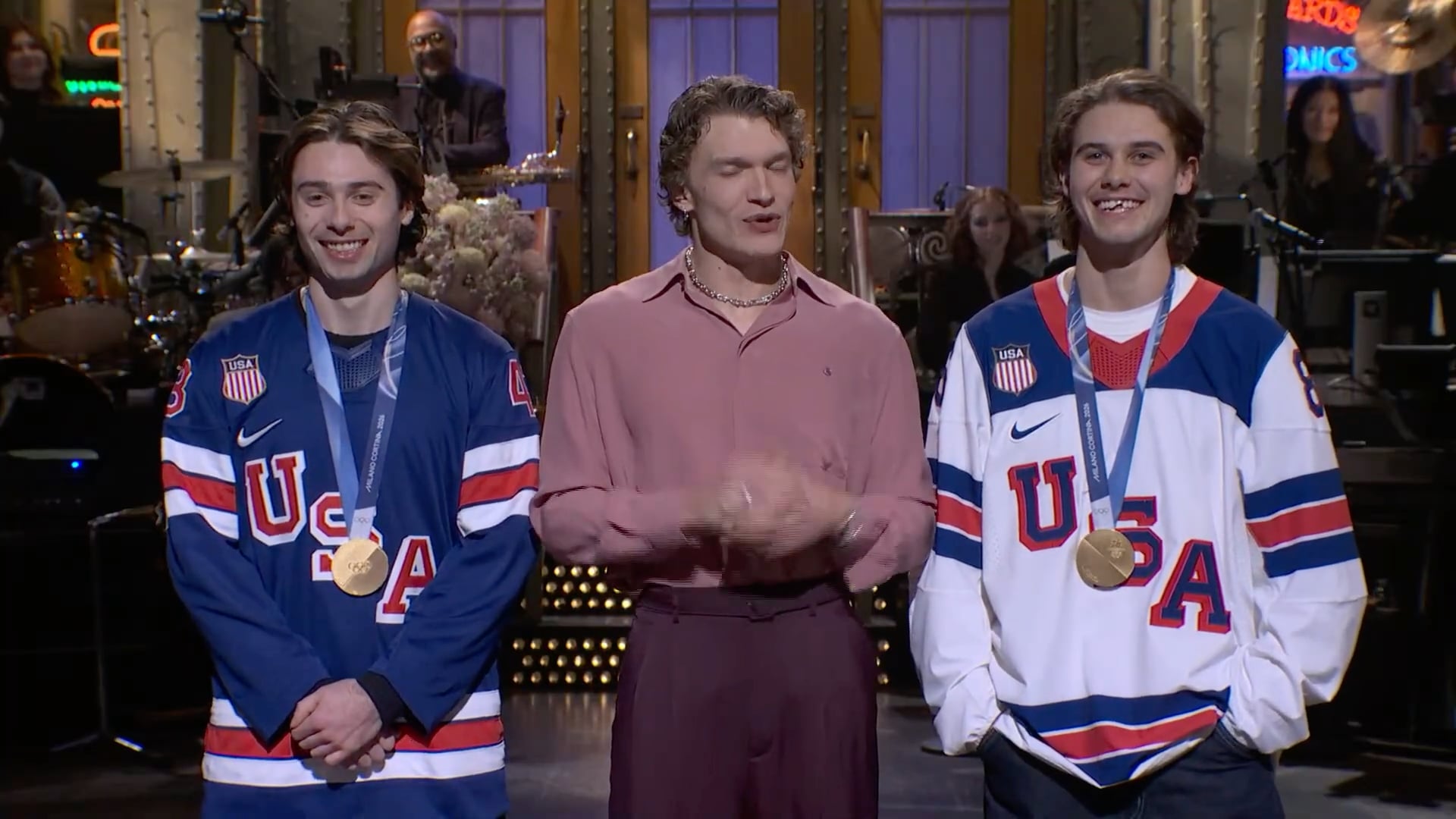 Hilary Knight & Megan Keller from the US Women’s Hockey Team Made a BETTER Cameo in Connor Storrie’s SNL Monologue “it was gonna be just us, but we thought we’d invite the guys too”