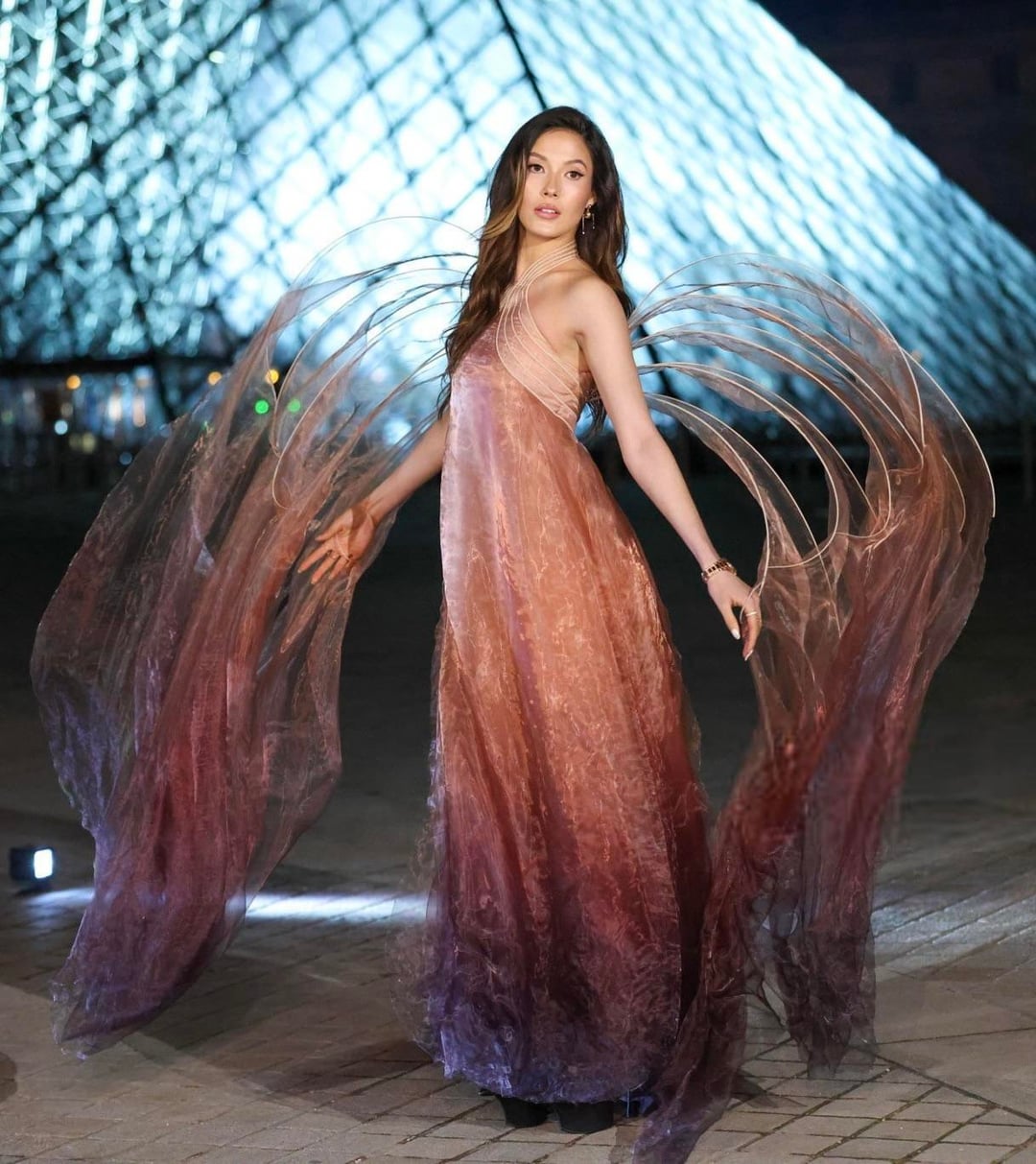 Olympic champion Eileen Gu attends the Grand Dîner du Louvre in Iris van Herpen