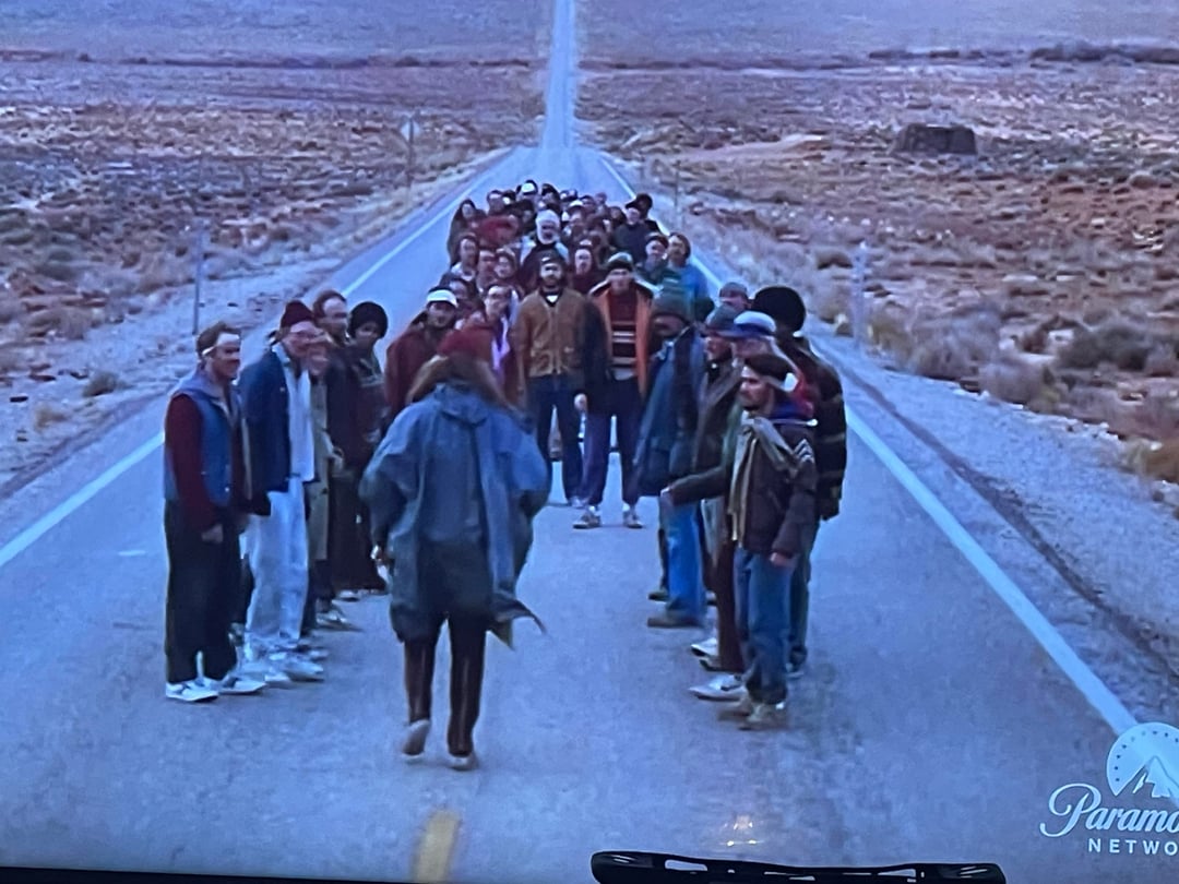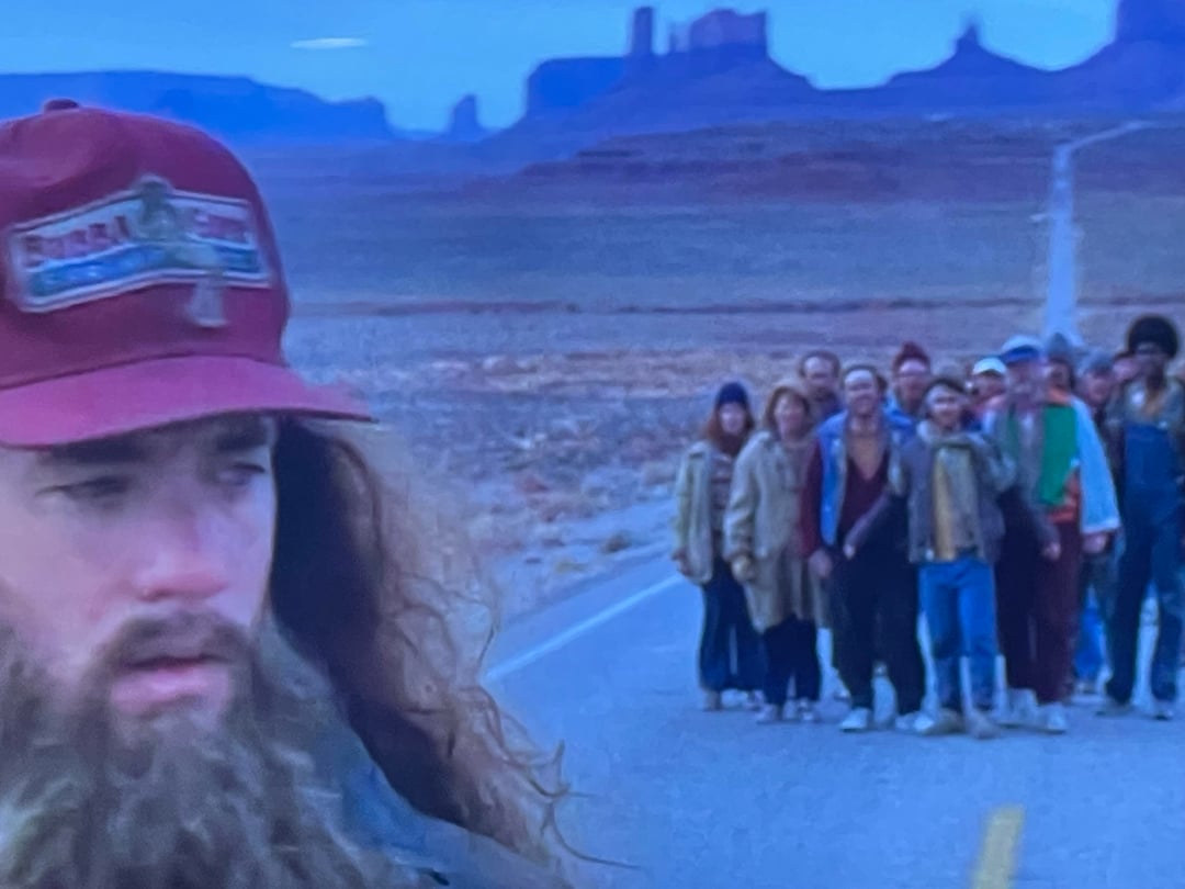 The first follower that Forrest Gump (1994) has on his run that says “I’ll follow you anywhere Mr. Gump runs with him the whole way and is in the front of all the group shots getting noticeably older and hairier.